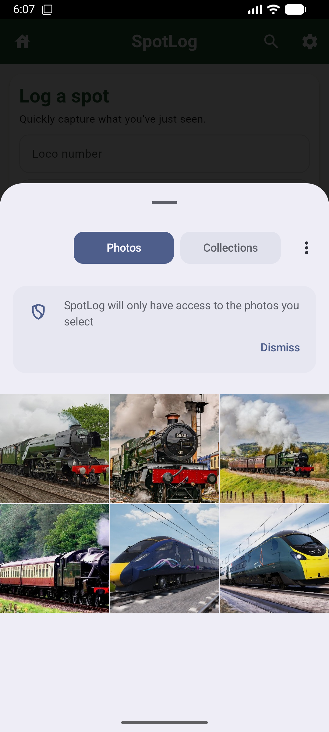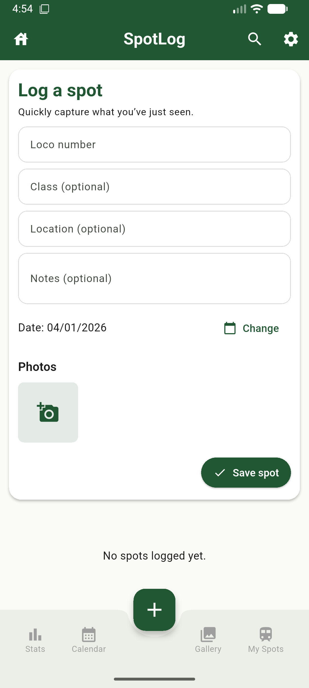 You can also add photos from this screen, clicking the camera icon within SpotLog will allow you to pick a photo to attach to the spot.