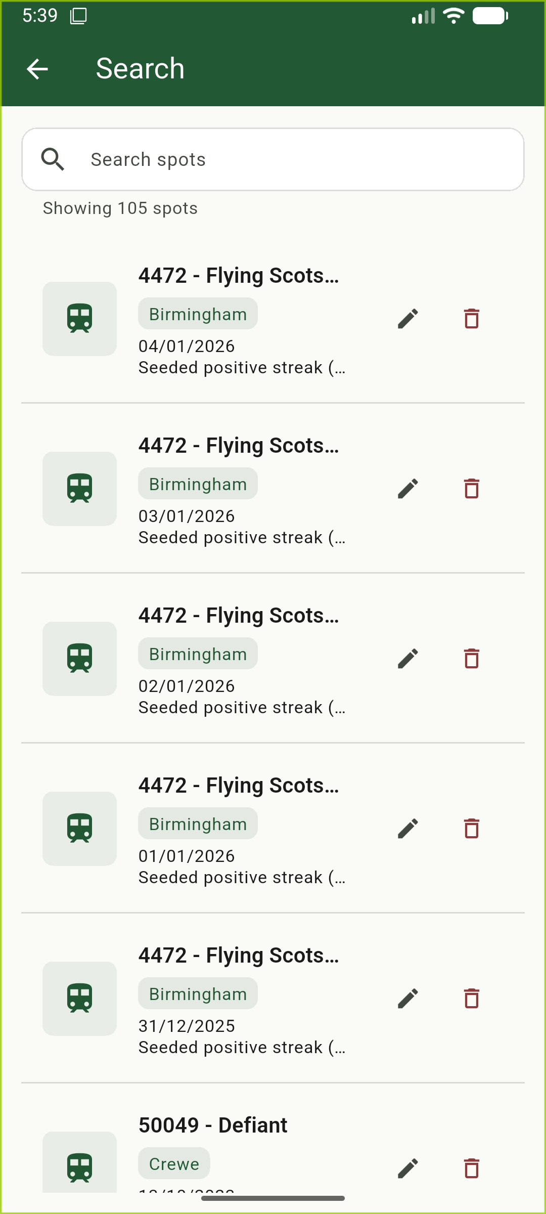 The search bar at the top of the screen accepts a variety of inputs that will search your recorded spots, this includes
